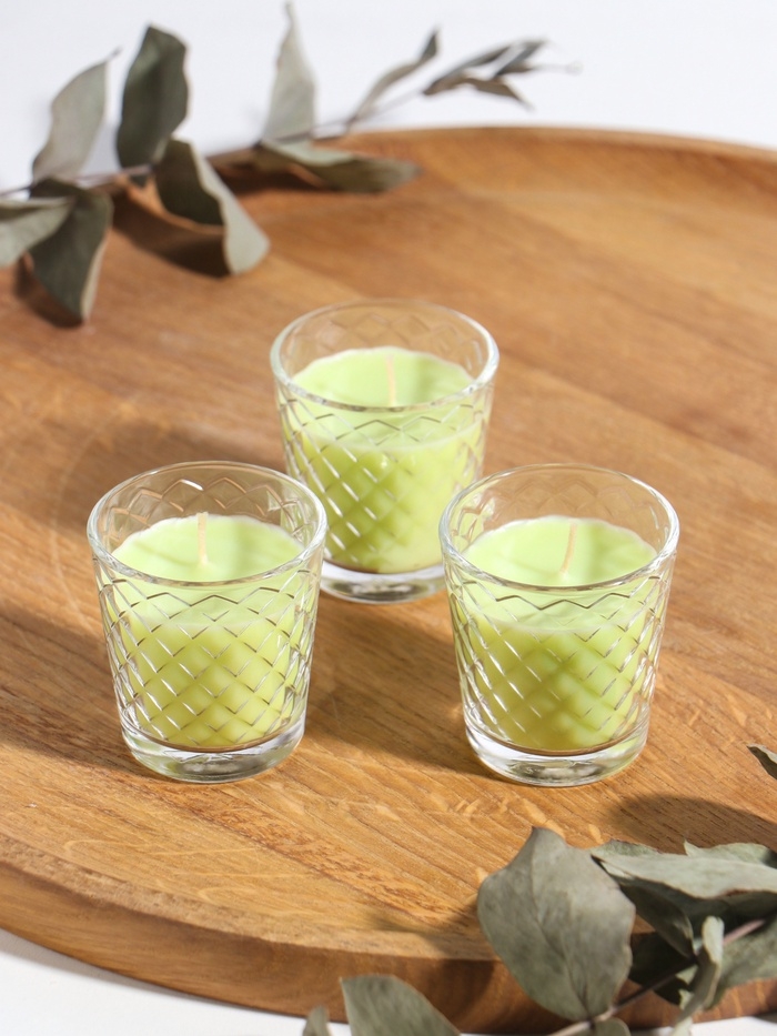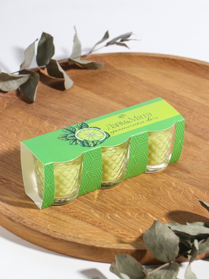 Свеча ароматическая в стакане (набор 3 шт) по 50 мл, 10 ч, 32 гр, ЛАЙМ-МЯТА