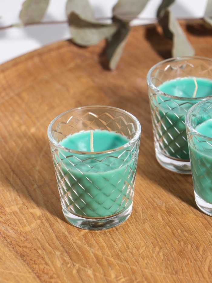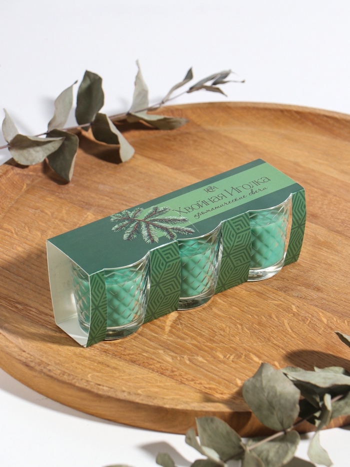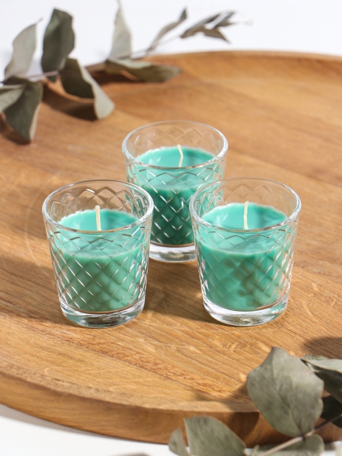 Свеча ароматическая в стакане (набор 3 шт) по 50 мл, 10 ч, 32 гр, ХВОЙНАЯ ИГОЛКА