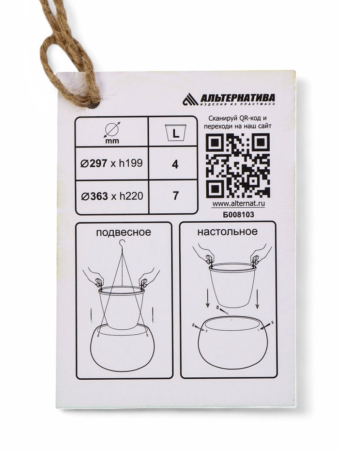 Кашпо "Жемчужина" 7л подвесное, бежевый