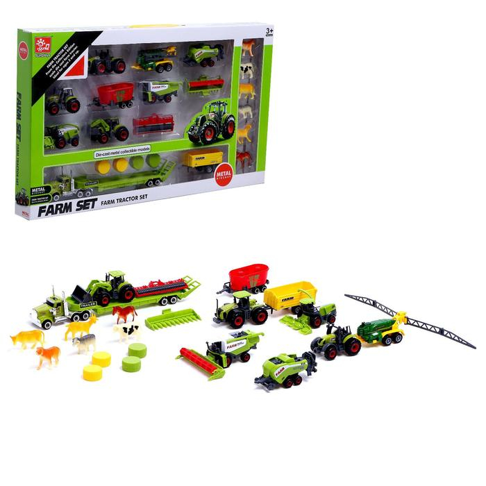 Набор металлических тракторов «Ферма», с животными, МИКС