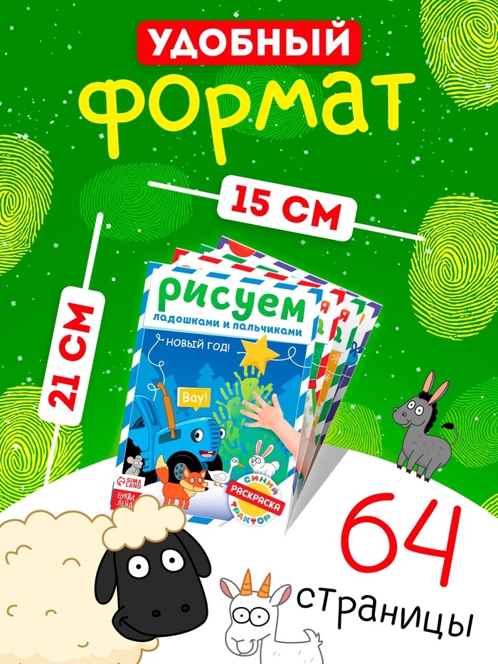 Набор пальчиковых раскрасок "Весёлый Новый год", 4 шт по 16 стр., Синий трактор