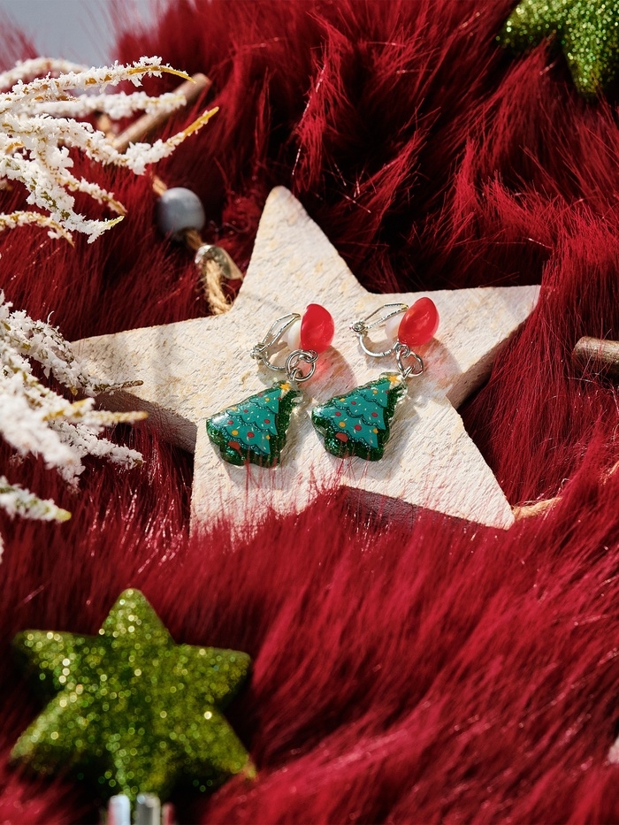 Клипсы детские "Выбражулька" ёлка, круг, цвет зелено-красный