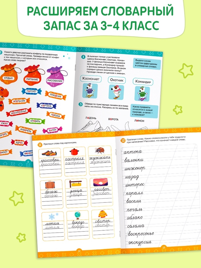 Рабочая тетрадь "Нескучные слова. Правописание словарных слов 3-4 класс", 44 страницы.