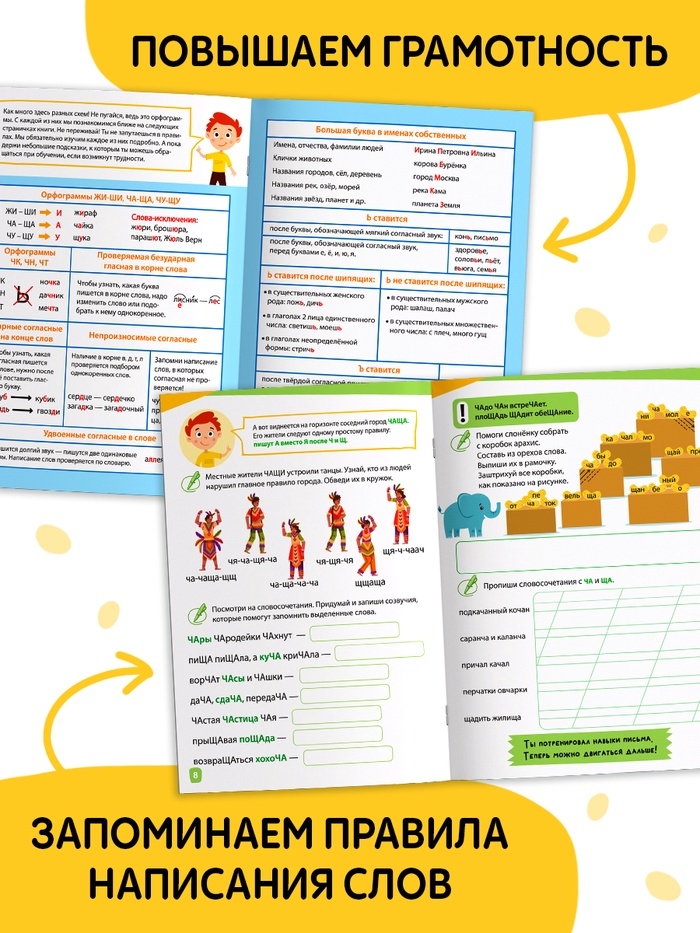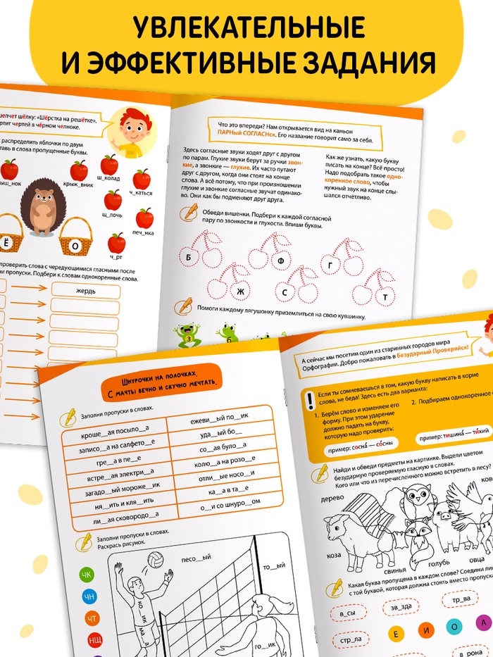Тренажёр "Весёлые орфограммы. Пишем окончания правильно", 44 страницы.