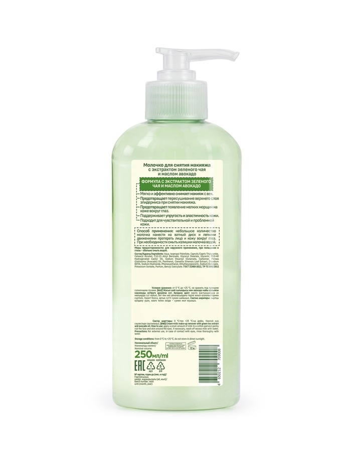 Молочко для снятия макияжа "Особая серия" с экстрактом зеленого чая и маслом авокадо, 250 мл