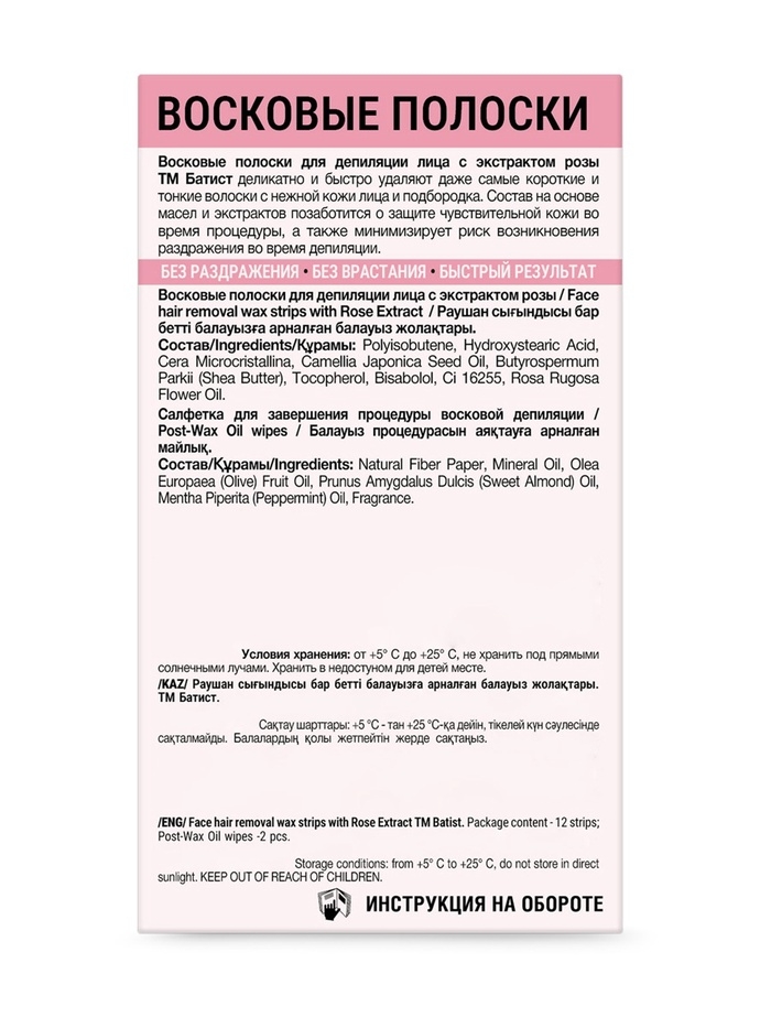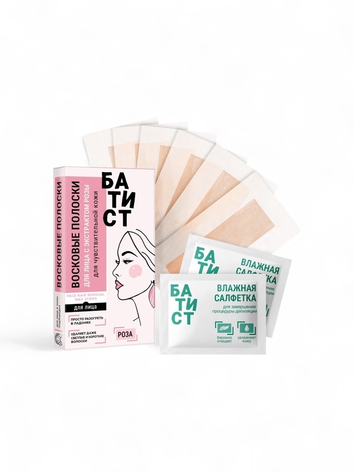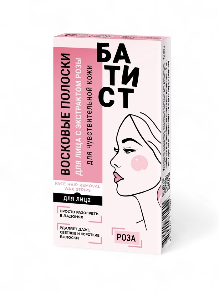 Восковые полоски БАТИСТ для лица с экстрактом Розы, 12 шт
