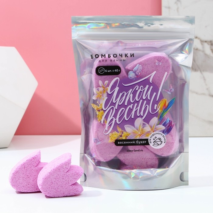 Подарочный набор косметики «Яркой весны!», бомбочки для ванны 6 х 40 г,ЧИСТОЕ СЧАСТЬЕ