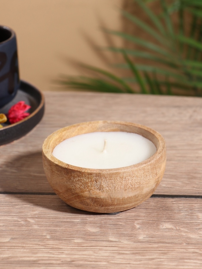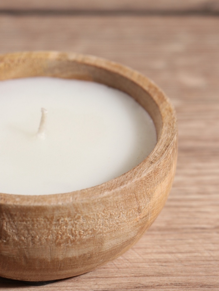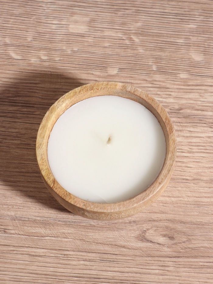 Свеча в деревянной чаше, парафин и соевый воск 9,5х9,5х4 см