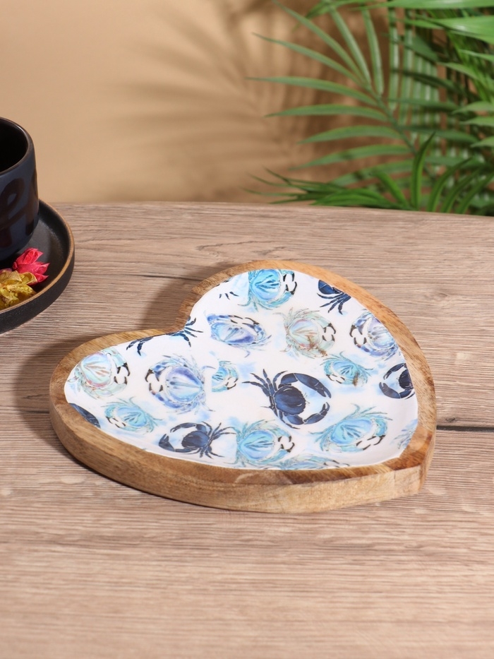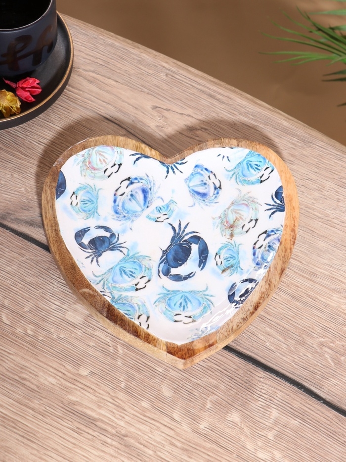 Блюдо в форме сердца «Крабы», дерево манго, 20.5×20×2.3 см