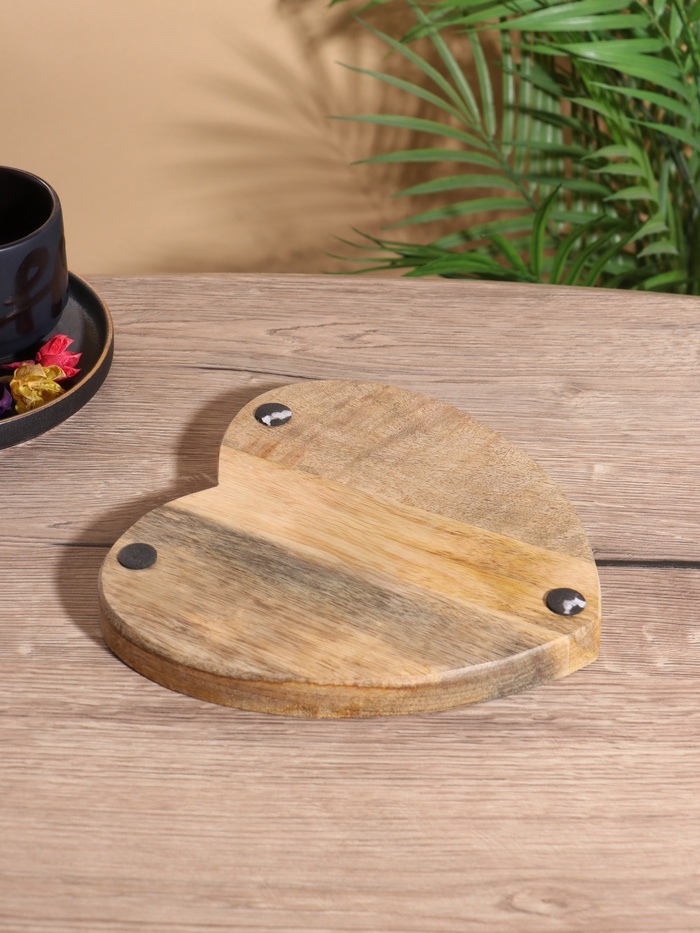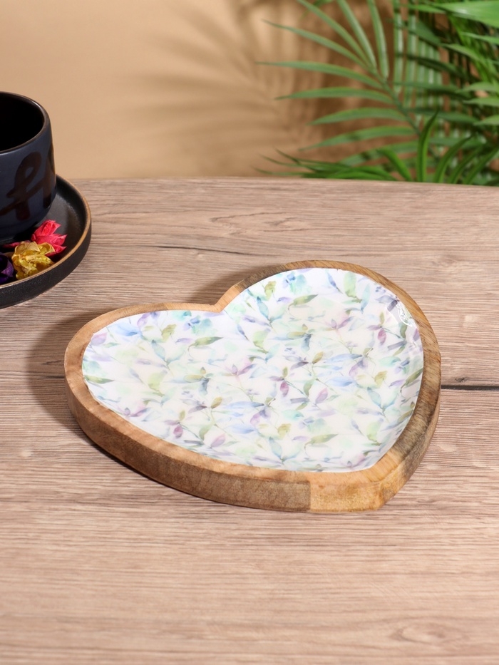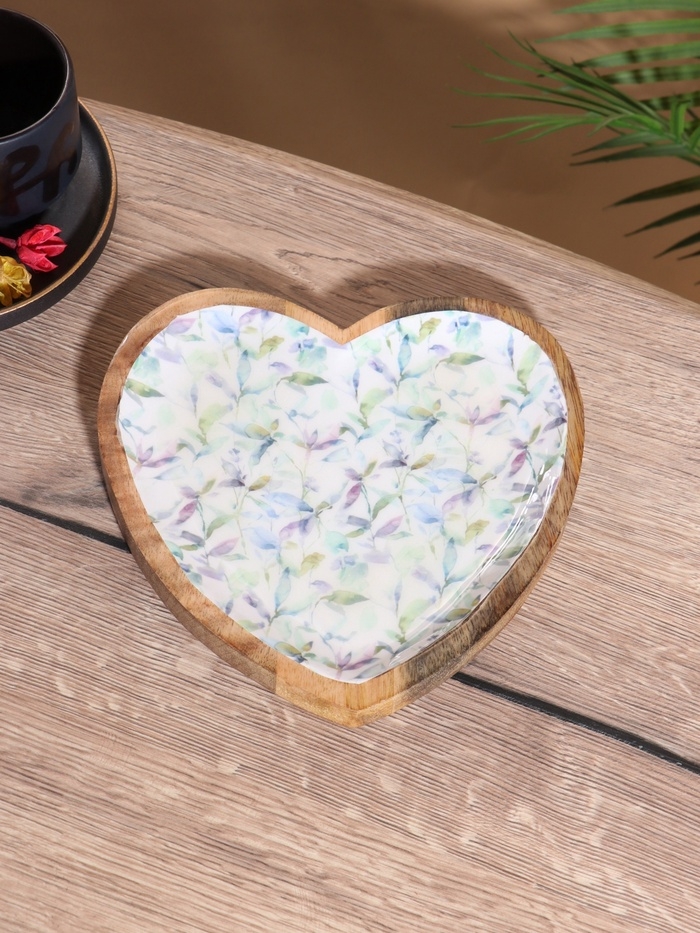 Блюдо в форме сердца «Оттенки сирени», дерево манго, 20.5×20×2.3 см