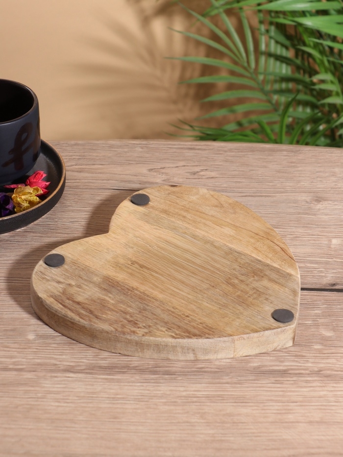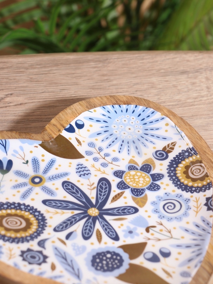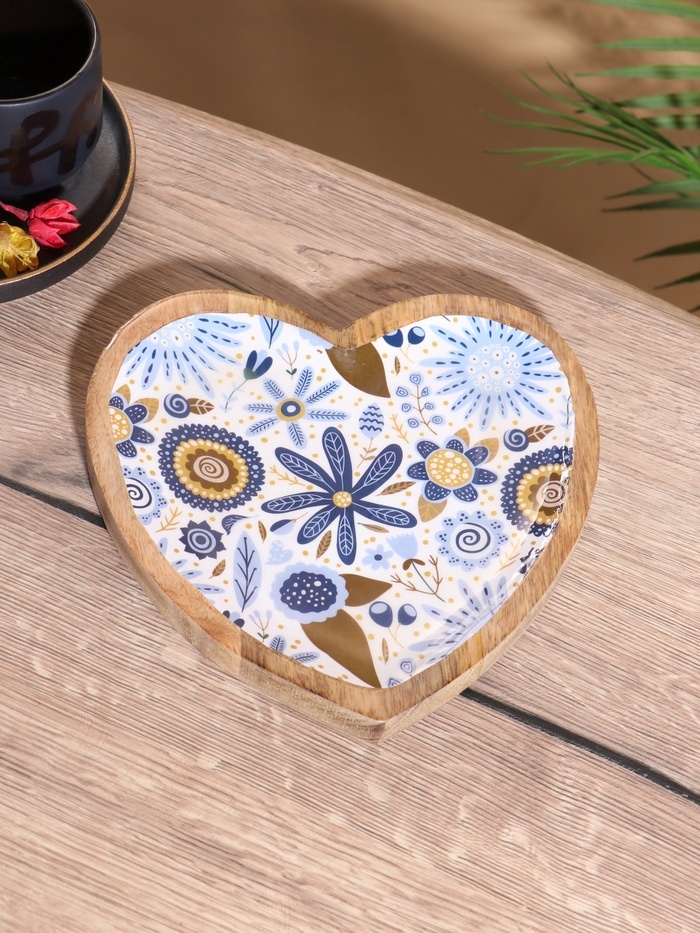 Блюдо в форме сердца «Васильки», дерево манго, 20.5×20×2.3 см