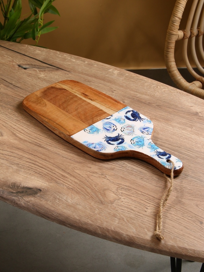 Доска разделочная прямоугольная "Крабы" дерево манго 41х18 см