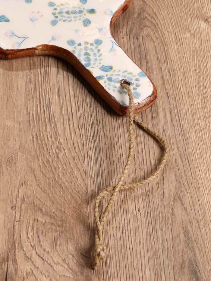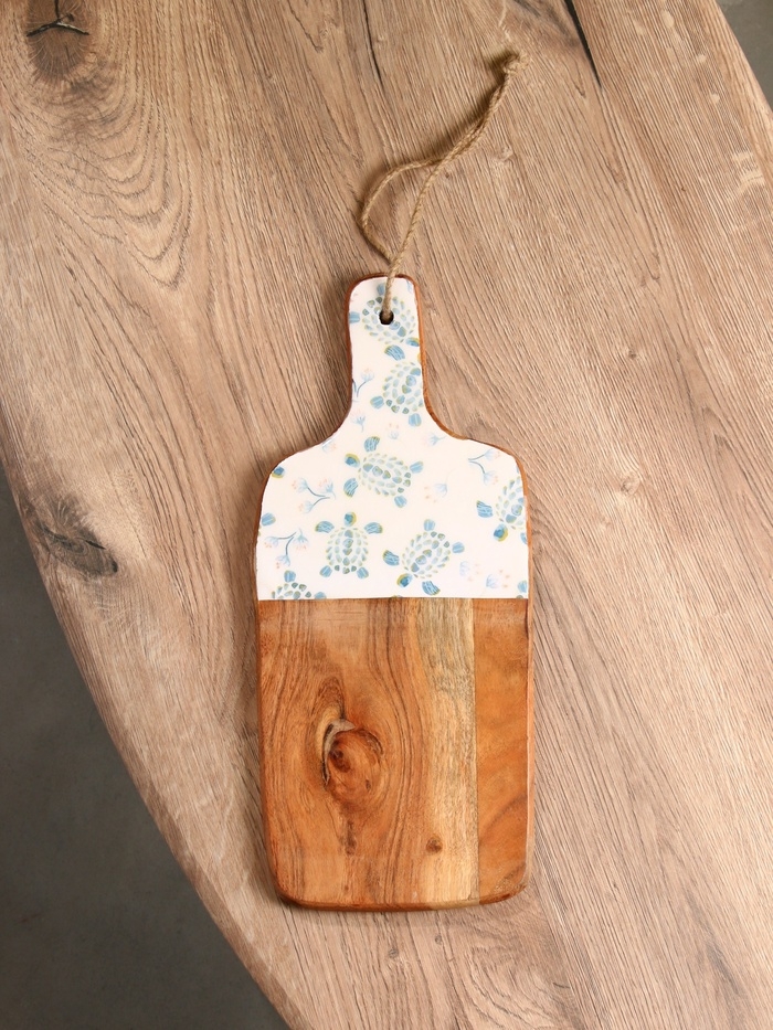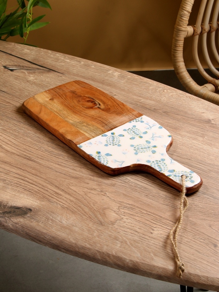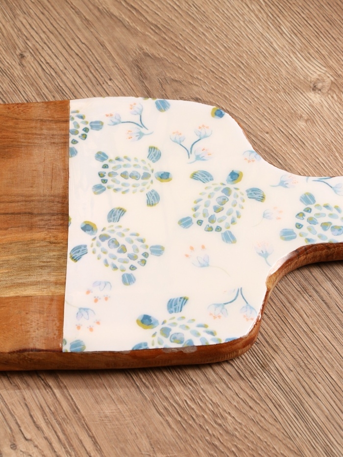 Доска разделочная прямоугольная "Черепаха и цветы" дерево манго 41х18 см