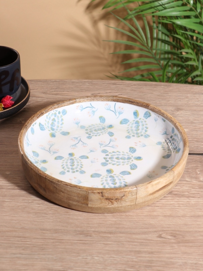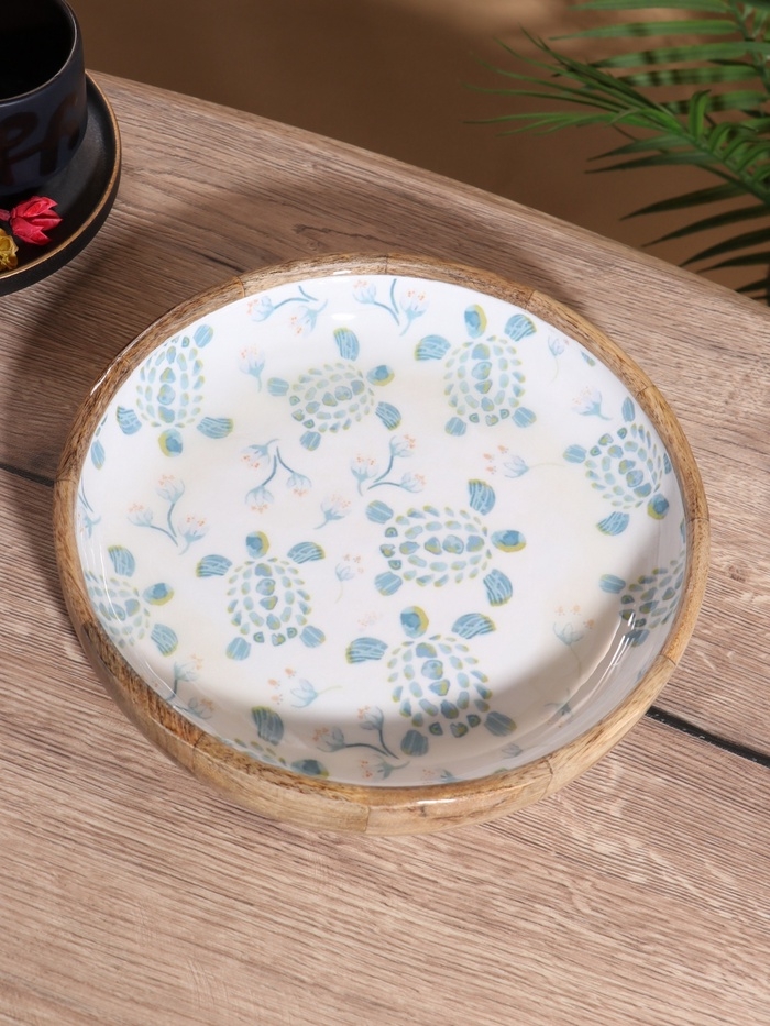 Блюдо "Черепаха и цветы" дерево манго 25х25х4,5 см