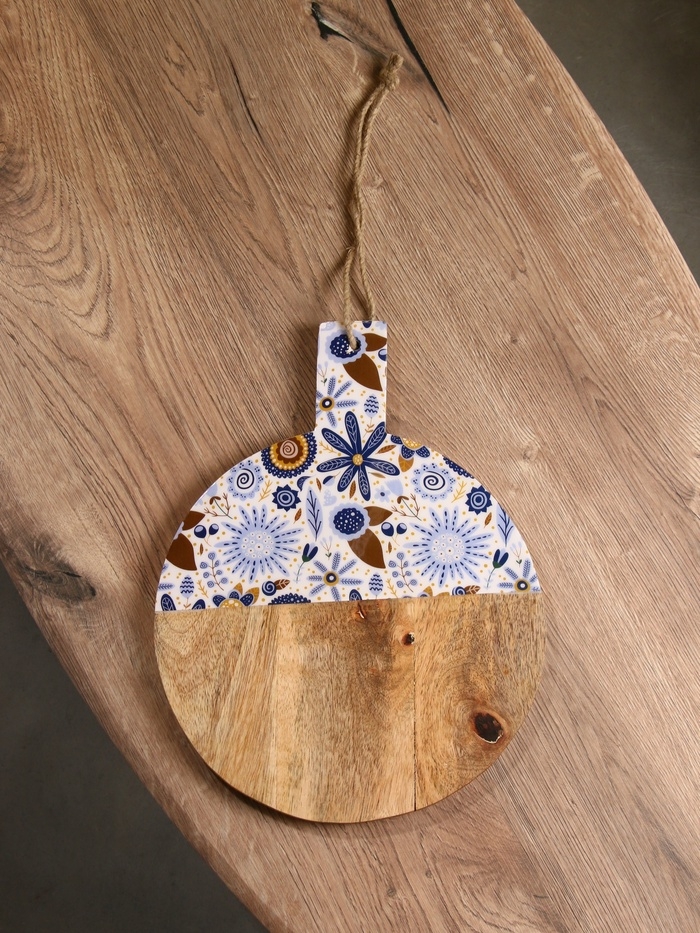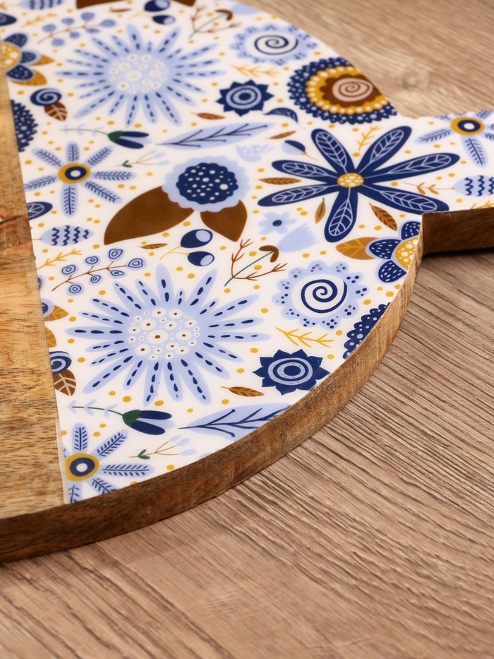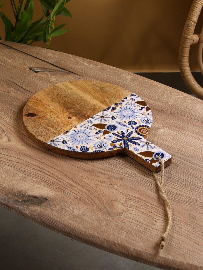 Доска разделочная круглая "Васильки" дерево манго 36х28 см