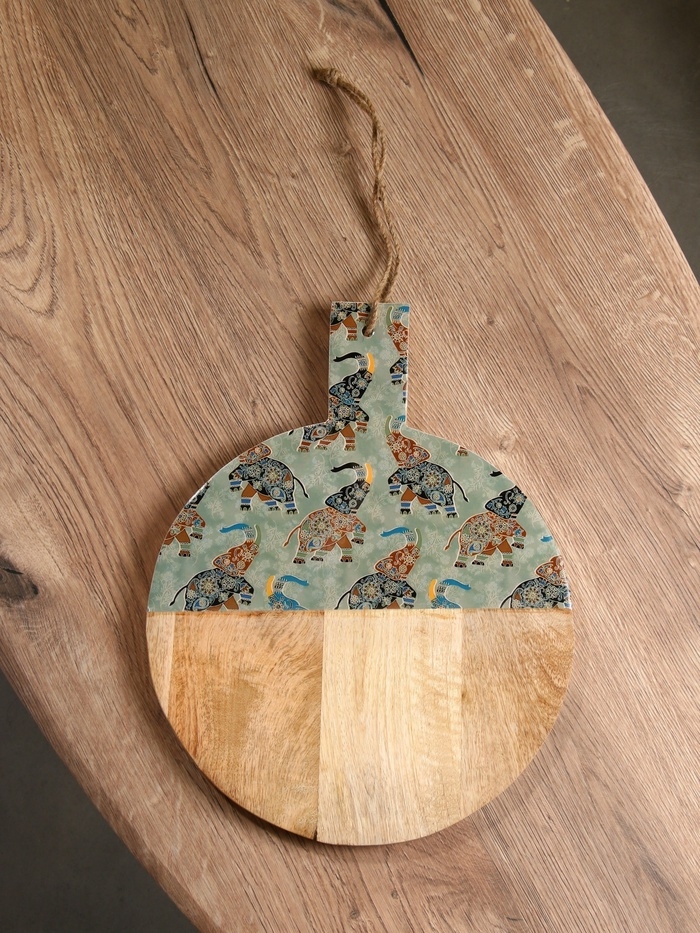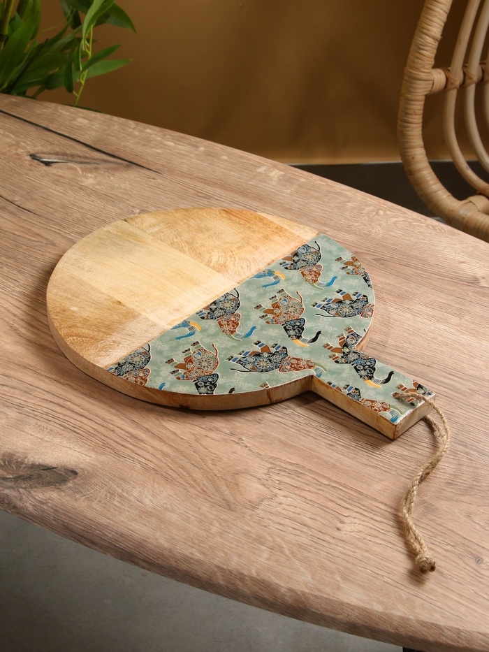 Доска разделочная круглая "Мудрый слон" дерево манго 36х28 см