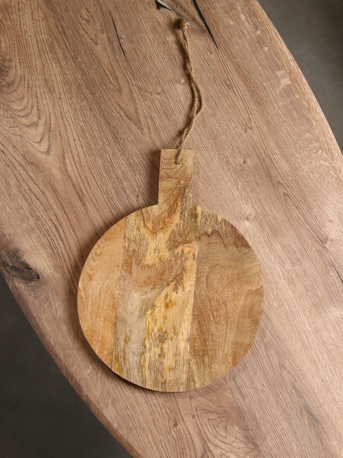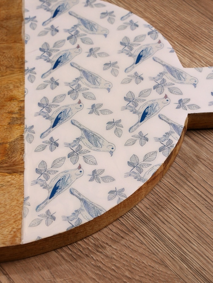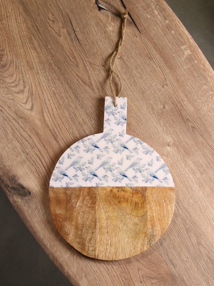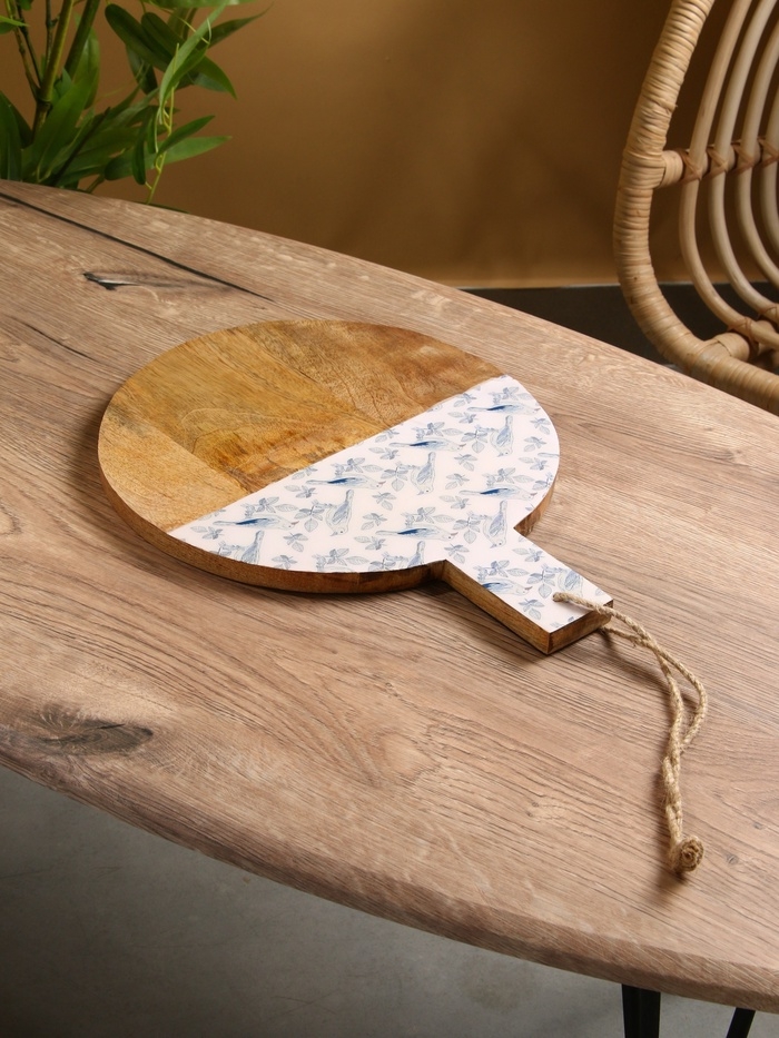 Доска разделочная круглая "Синие птицы" дерево манго 36х28 см