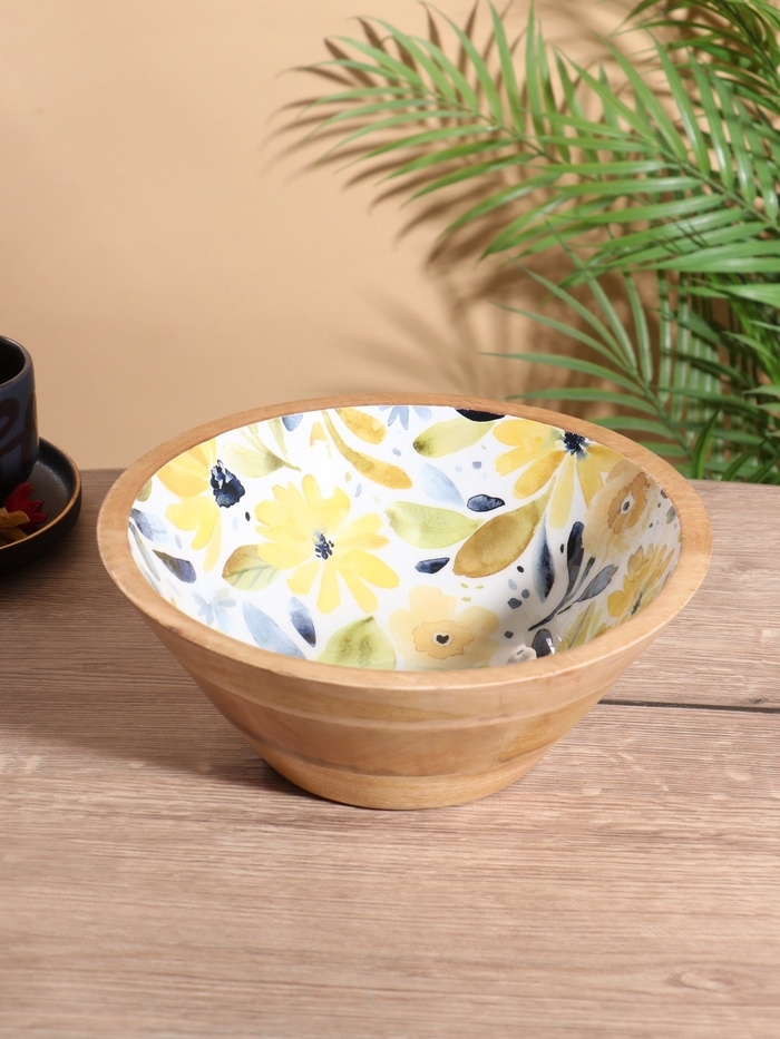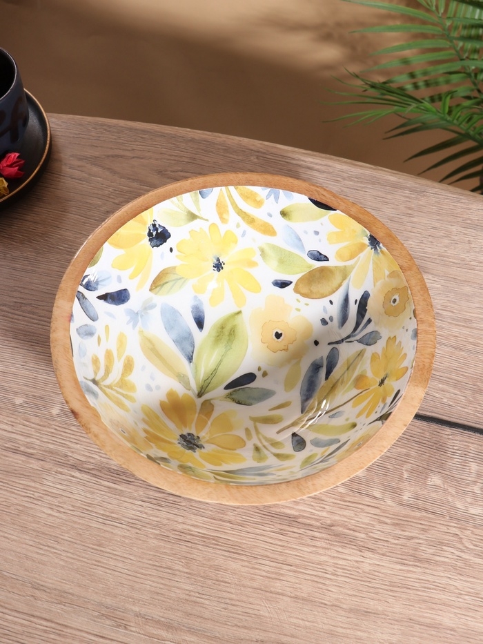 Салатник «Желтые и синие цветы», 25×25×10 см, дерево манго
