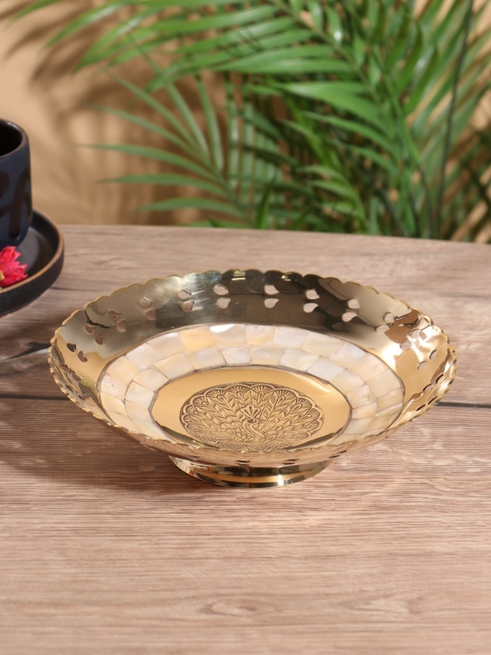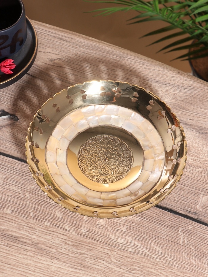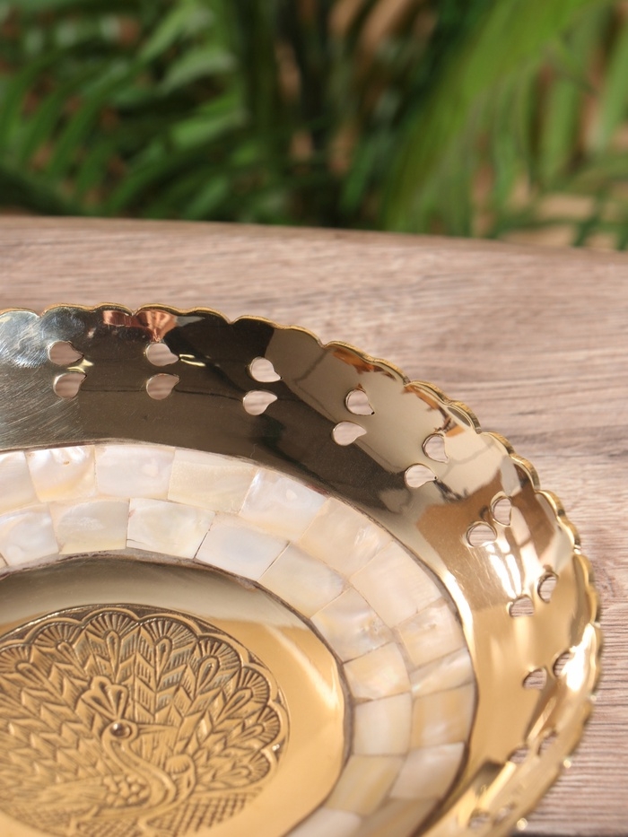 Блюдо сервировочное "Жар-Птица" латунь с перламутром 19,5х19,5х5,5 см