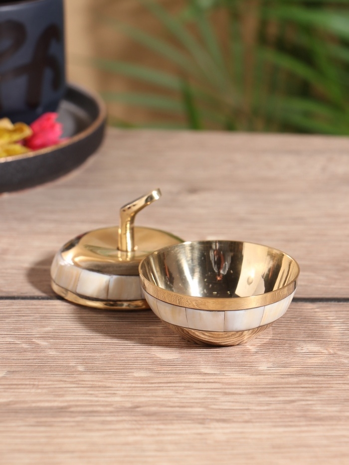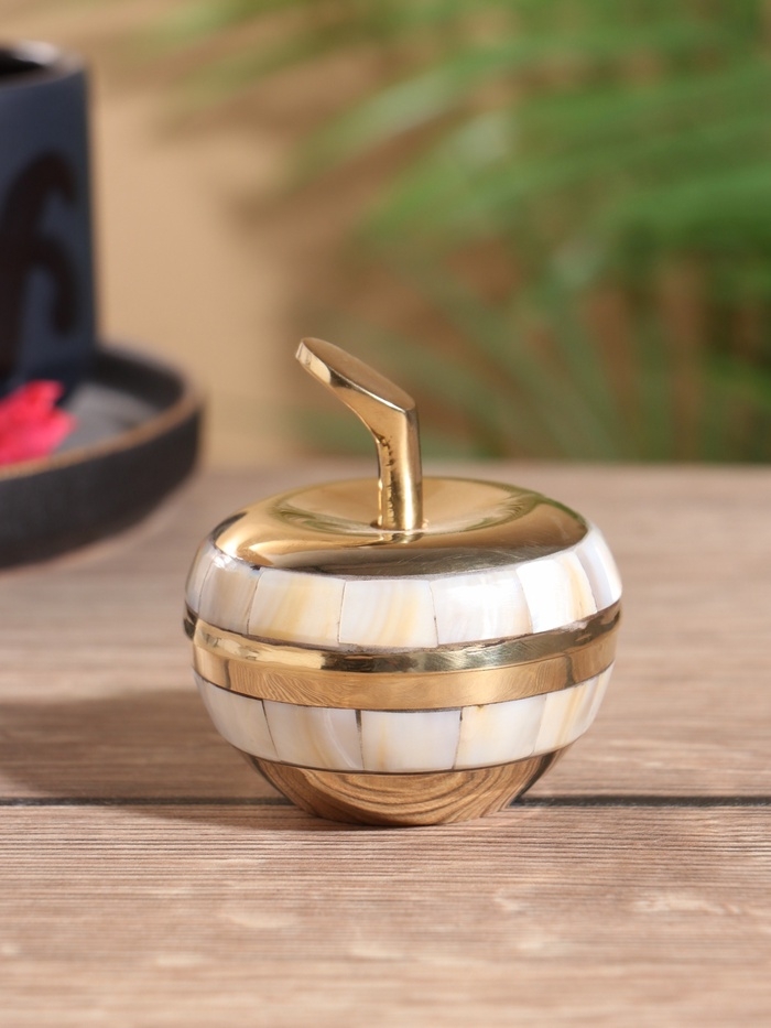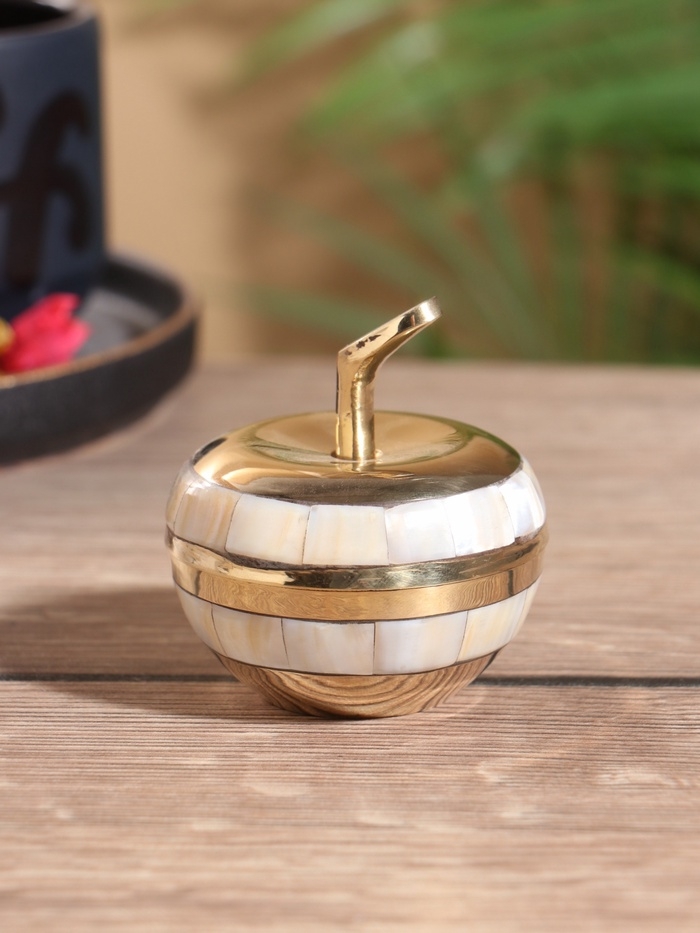 Шкатулка "Яблоко золотое" латунь с перламутром 6х6х6,5 см
