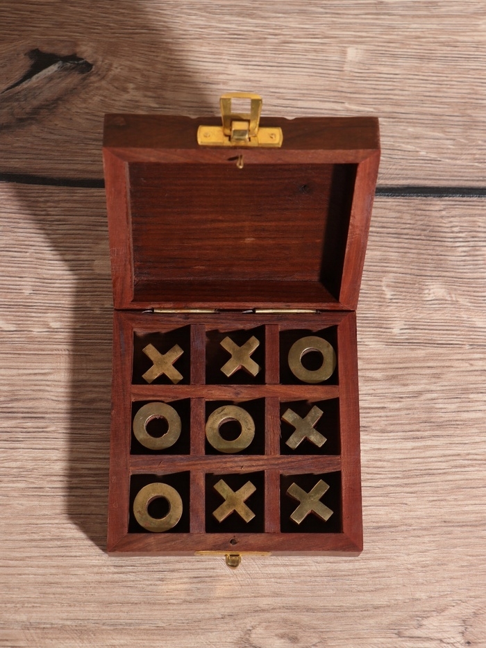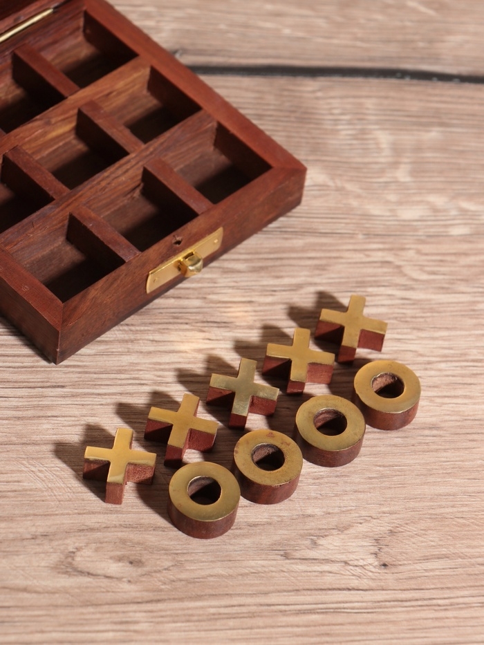 Настольная игра "Крестики-нолики" 10х10 см, дерево шишам, латунь