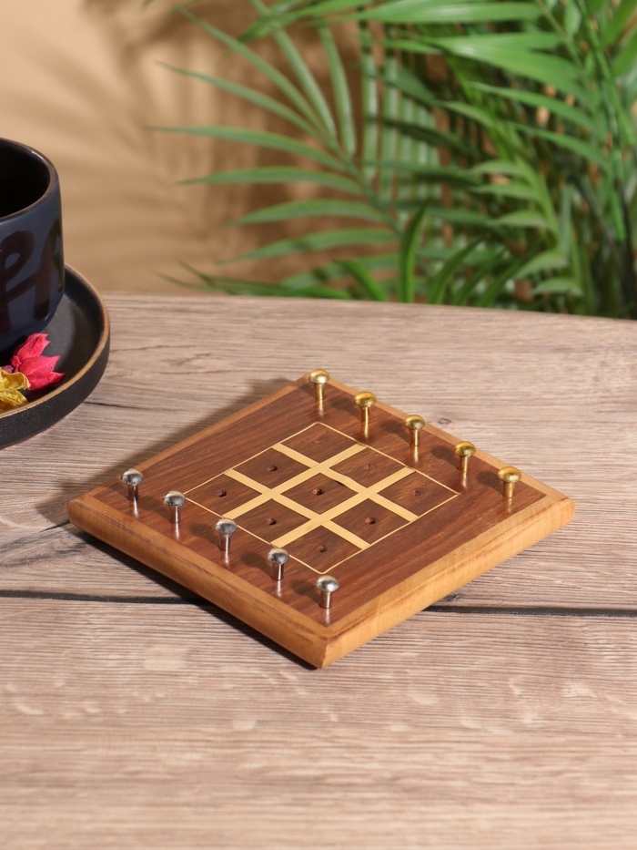 Настольная игра «Крестики-нолики», 13×13.5 см, дерево шишам, латунь