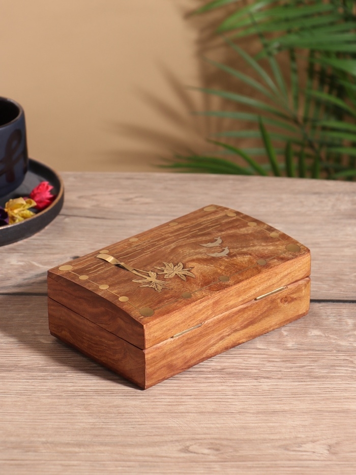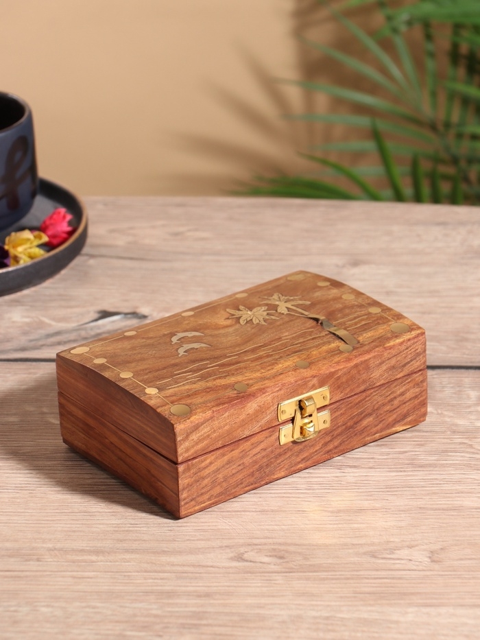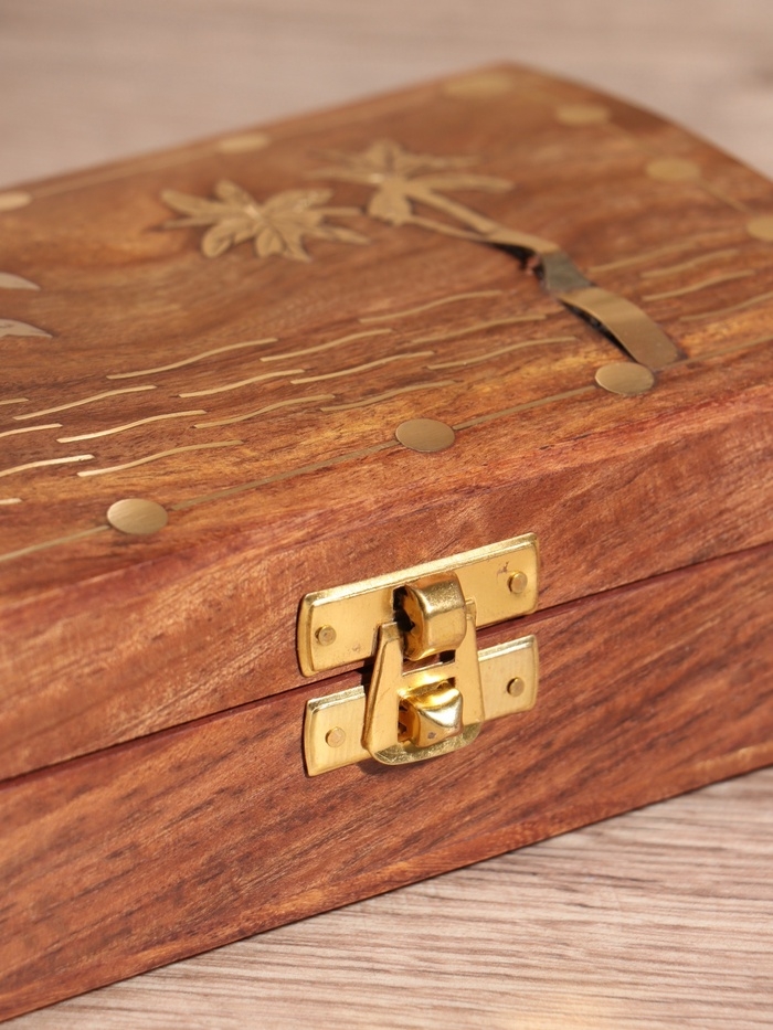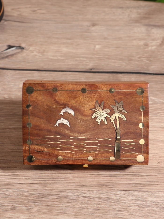 Шкатулка «Дельфины», 15.5×10.5×5.5 см, дерево шишам, латунь