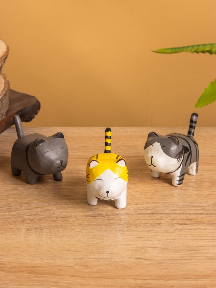 Сувенир «Котик Неко полосатый», 7×3×5 см, дерево, МИКС