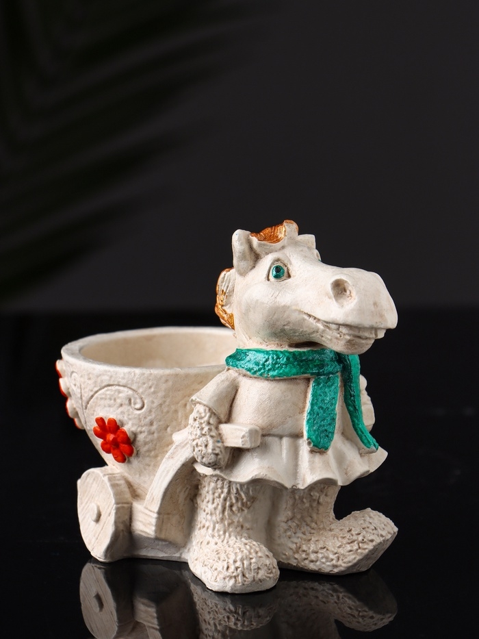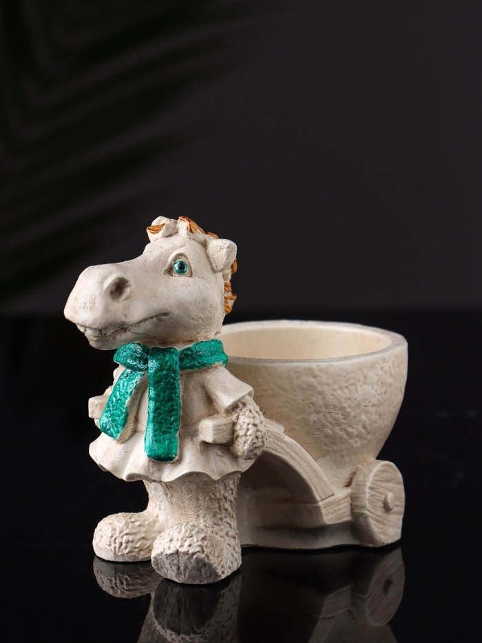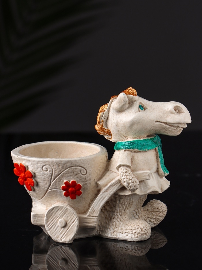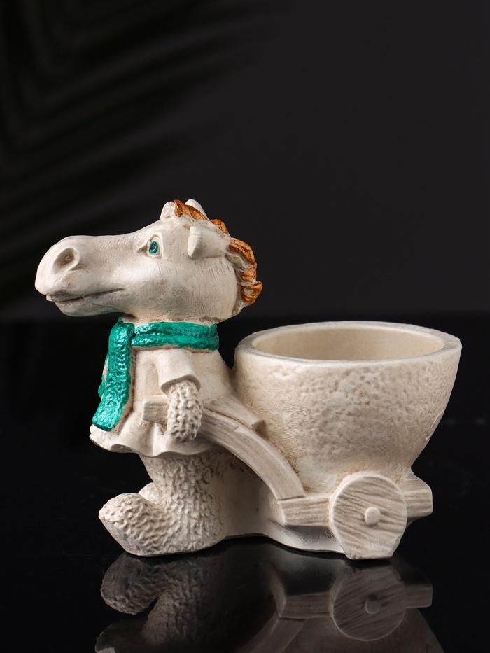 Фигурное Кашпо "Лошадь с тележкой" 10х10х6 см, бежевый
