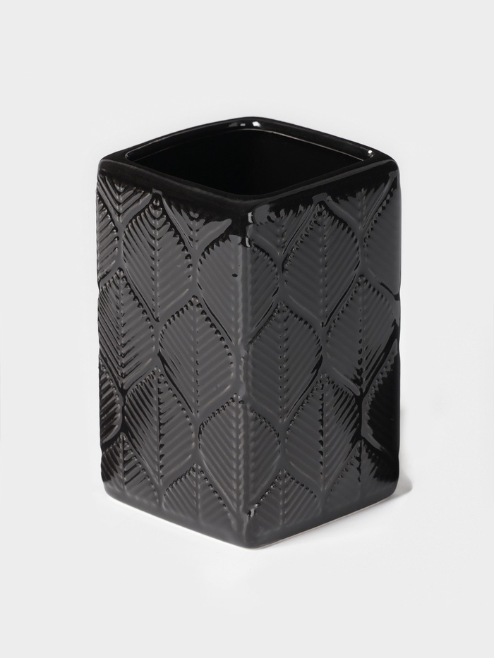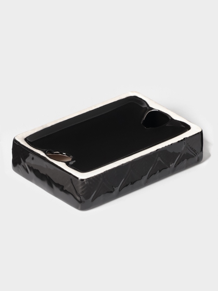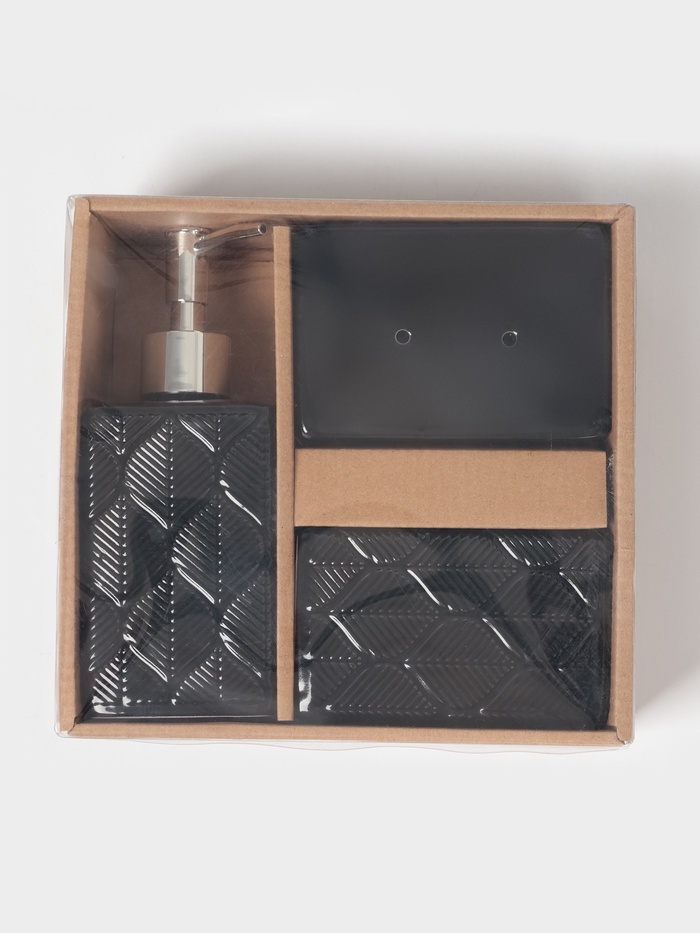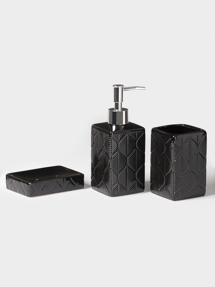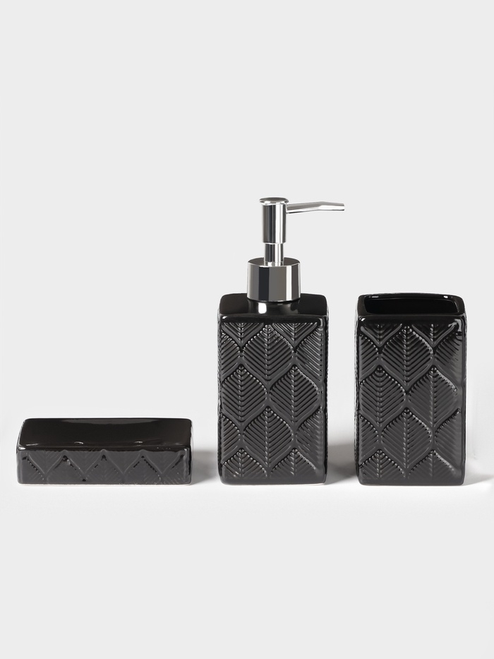 Набор для ванной «Лепесток», 3 предмета, дозатор для мыла, стакан, мыльница, чёрный