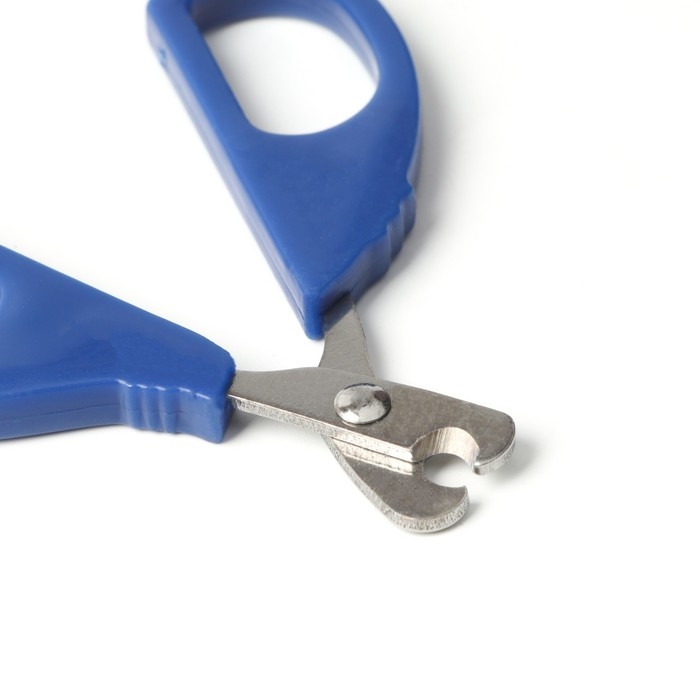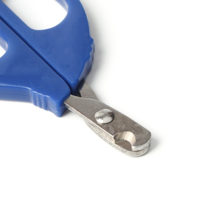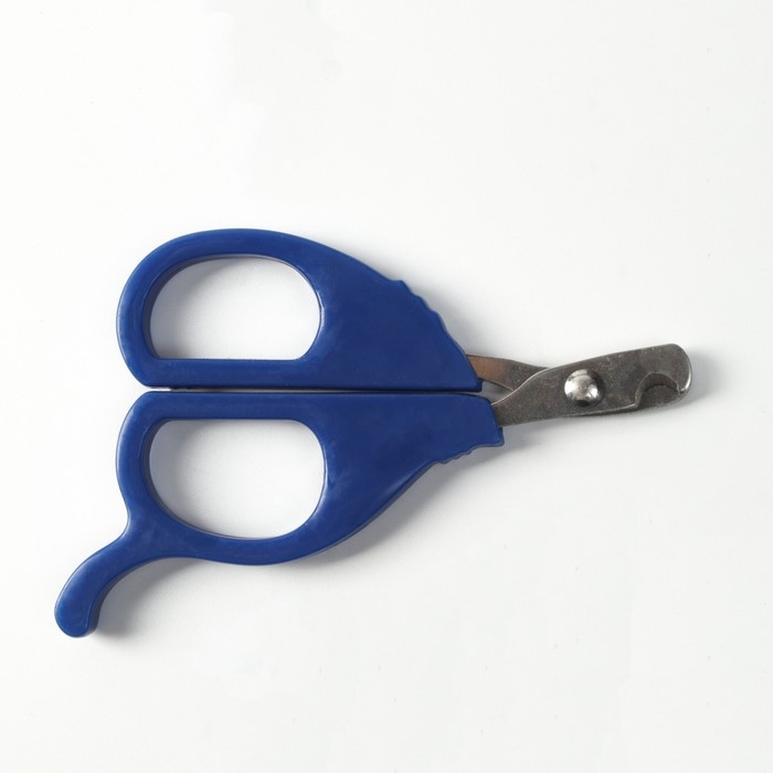 Ножницы-когтерезы изогнутые с прорезиненными ручками, отверстие 6 мм, тёмно-синие