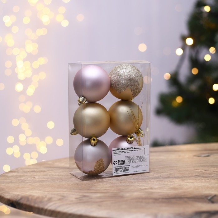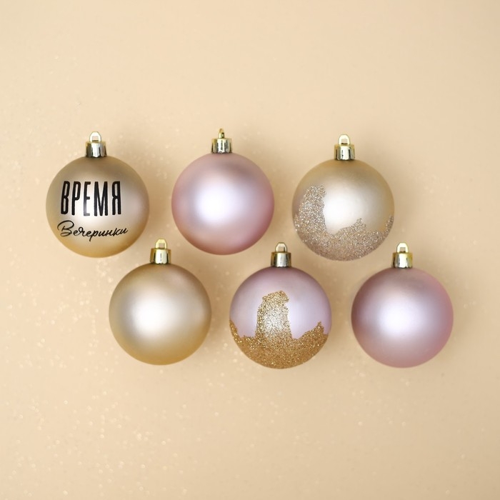 Новогодние шары ёлочные «Время вечеринки», на Новый год, пластик, d=6, 6 шт., цвет жемчужный и розовый
