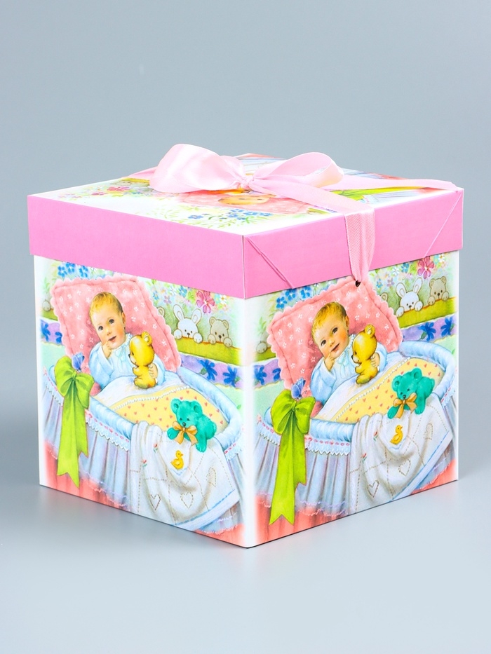 Коробка подарочная самосборная «Детская» Девочкам 15×15×15 см