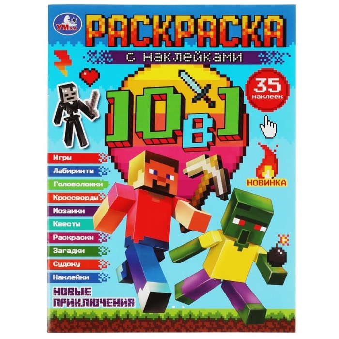 Раскраска 10 в 1 с наклейками «Майнкрафт. Новые приключения»