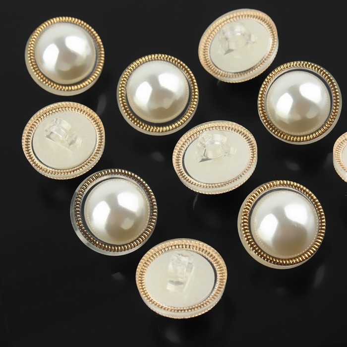 Набор пуговиц на ножке, d = 15 мм, 10 шт, цвет жемчужный/золотой