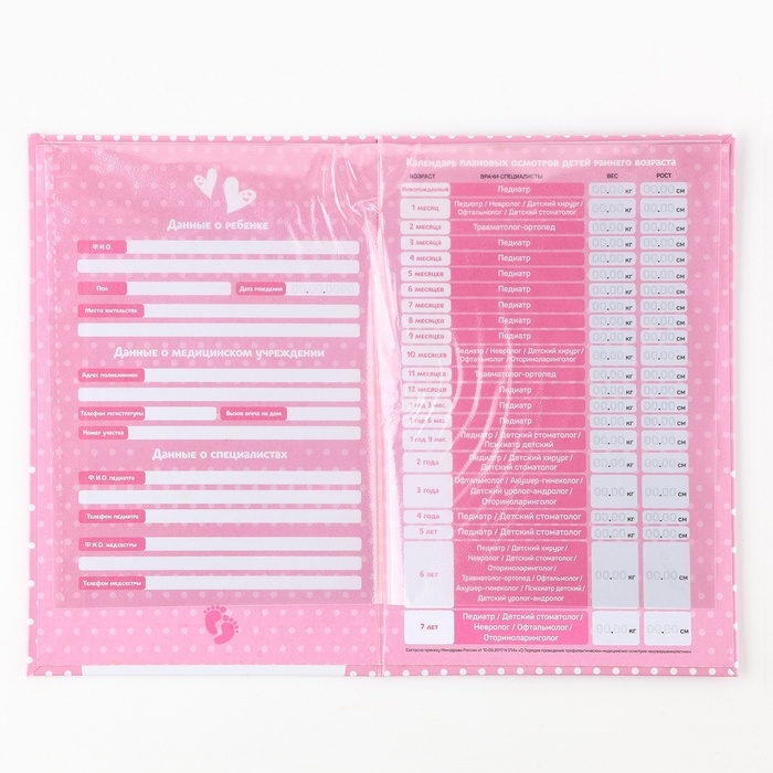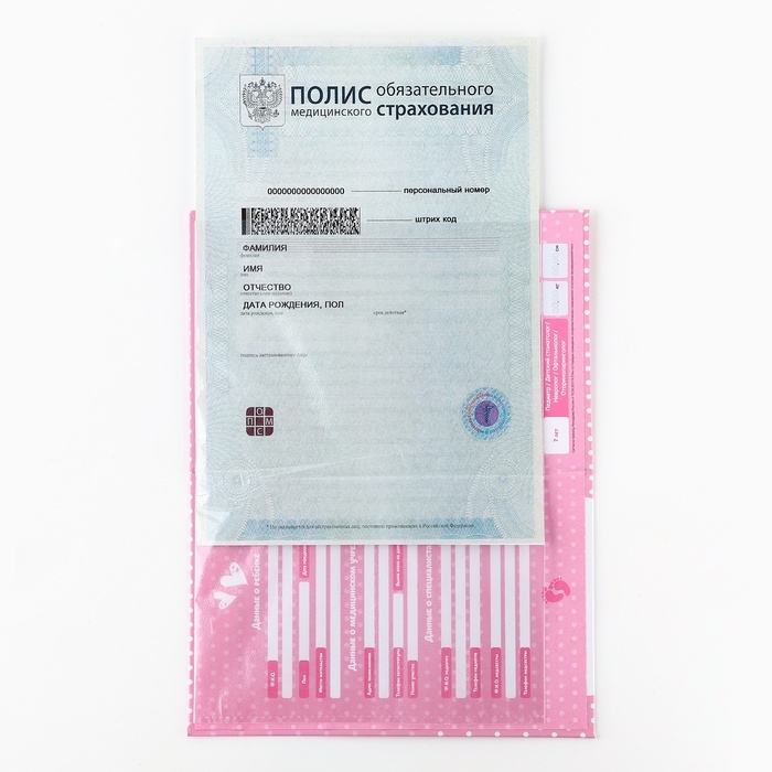 Папка для медицинского полиса "Мишка" для девочки, 17,5 х 11,3 см