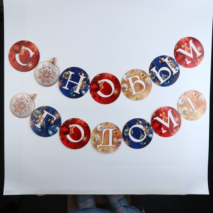 Гирлянда на кольцах "С Новым годом", шары, дл. 200 см