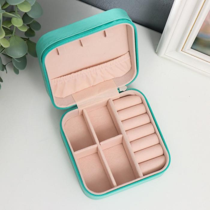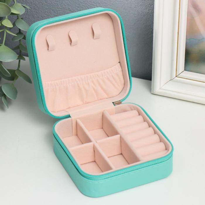 Шкатулка кожзам для украшений "Штрихи. Бирюза" 5х10х10 см