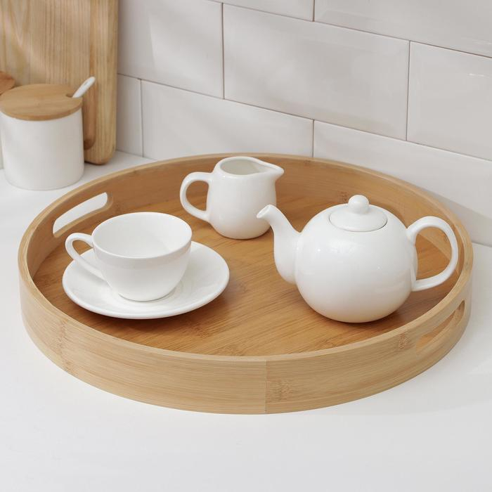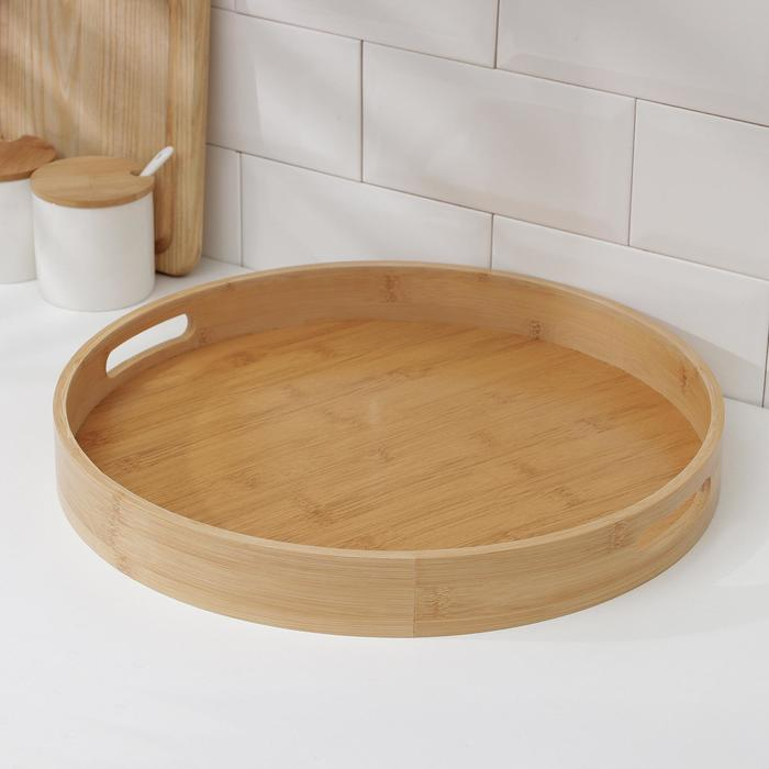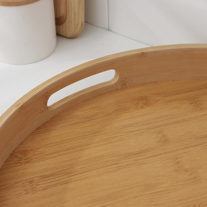 Поднос с ручками Доляна Striata, d=40 см, бамбук