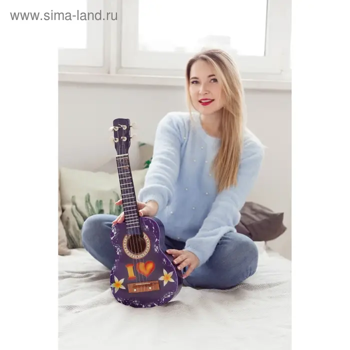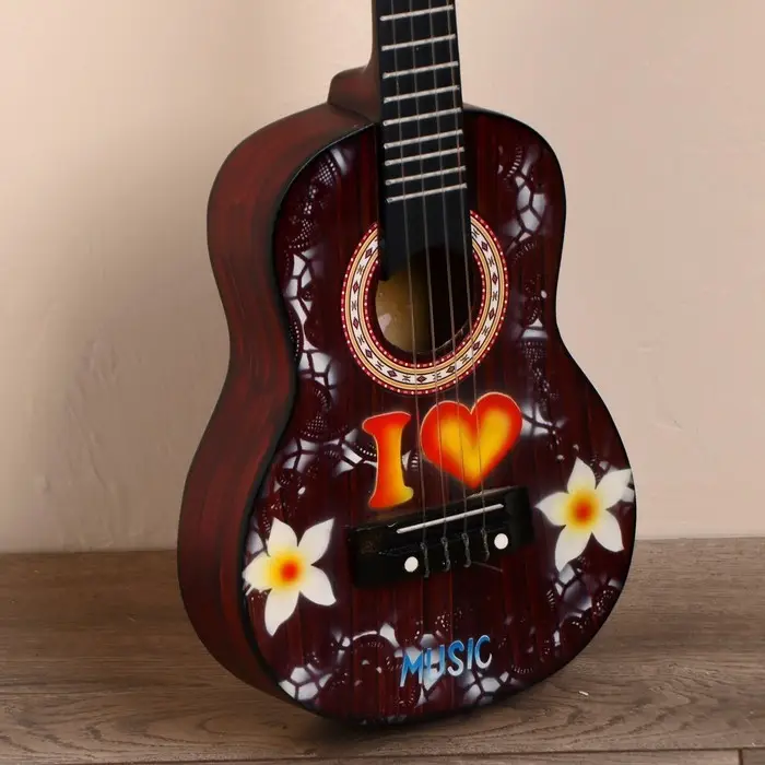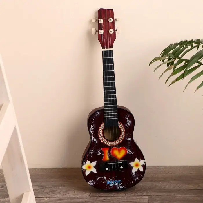 Сувенирный музыкальный инструмент гитара-укулеле "Цветы" 55х20х6 см