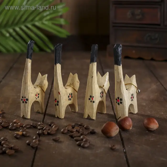 Сувенирный набор дерево "Кошечки в черный цветок под кольца" 7х5х10 см