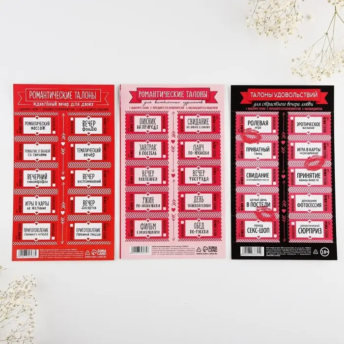 Набор талонов для двоих "Влюбленным", 11 х 21 см