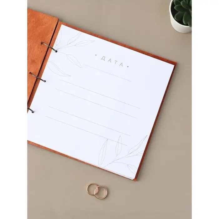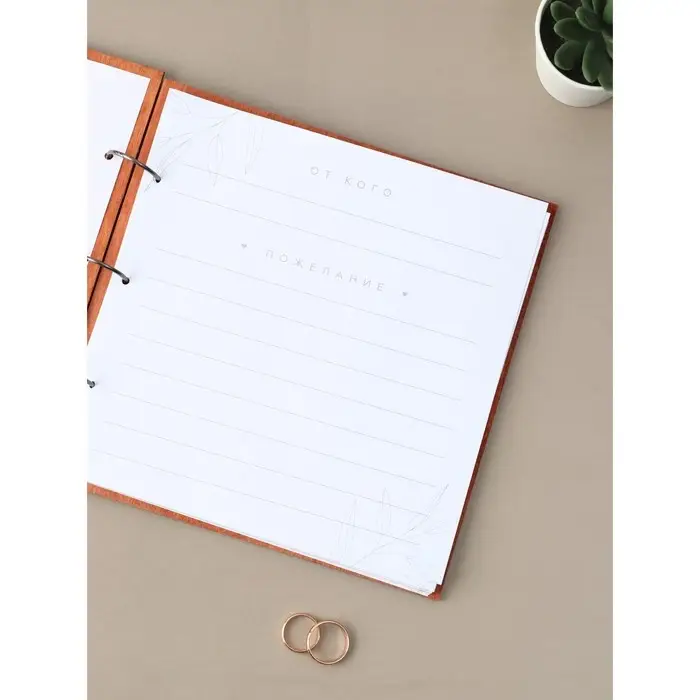 Книга пожеланий в дерев.обложке "Кольца", 21 х 21 см.