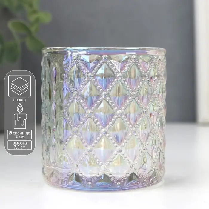 Подсвечник стекло стаканчик на 1 свечу "Ромбики" перламутр 7,5х7х7 см