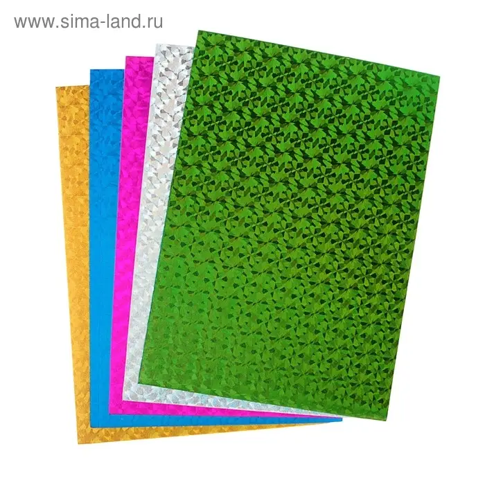 Фоамиран цветной голографический A4 deVENTE 5 цветов, 5 листов, толщина 2 мм, пластиковый пакет с европодвесом.
