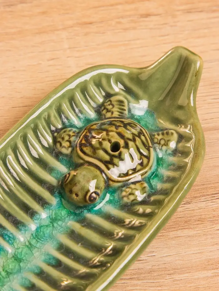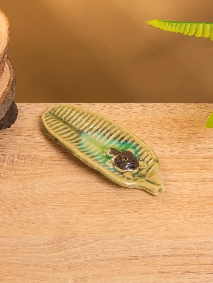 Подставка под благовония "Черепашонок на листе" керамика, цв. МИКС, 15х6х2 см