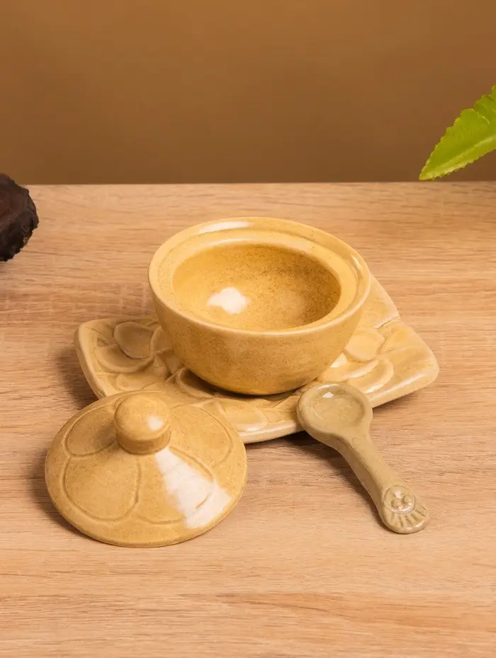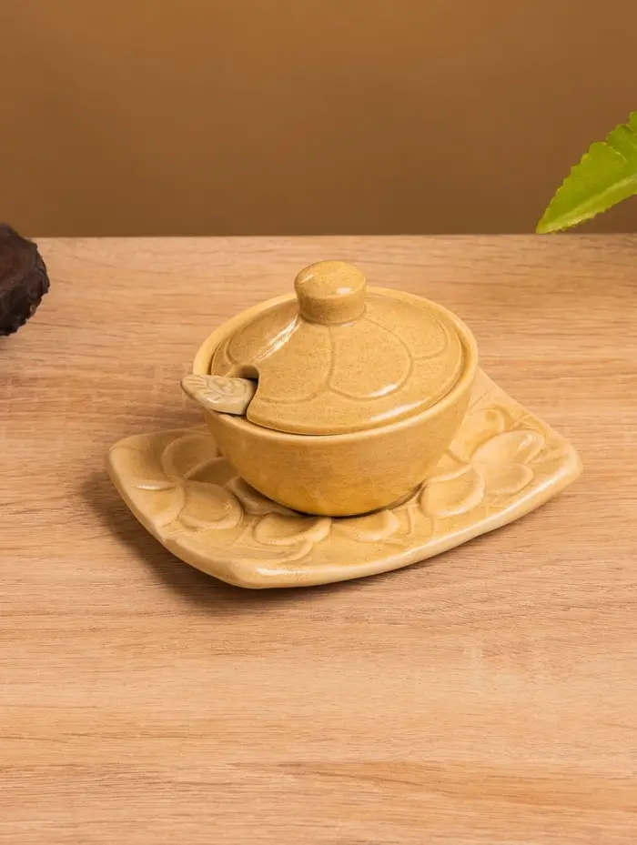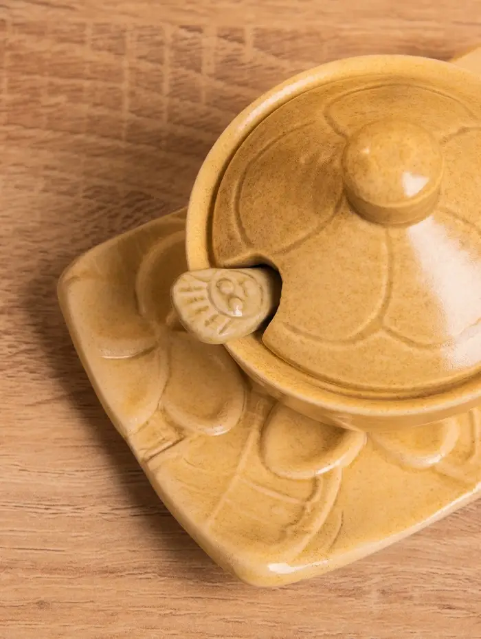 Соусник с крышкой на подставке «Классика», 11×8×7 см, керамика, бежевый
