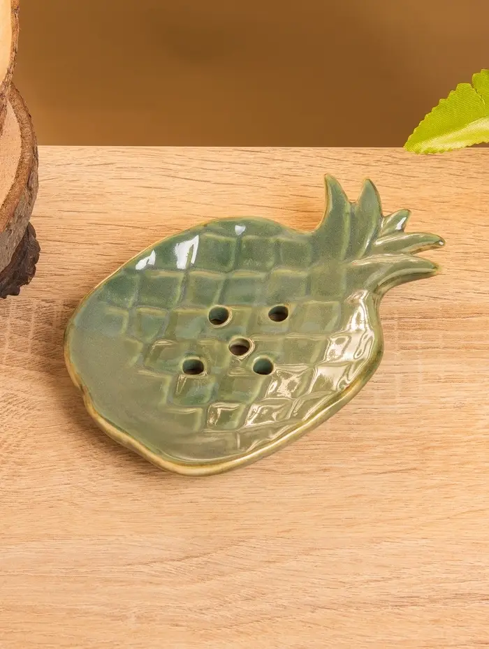 Мыльница "Ананас" керамика, цв. зелёно-коричневый, 13,5х9х2 см