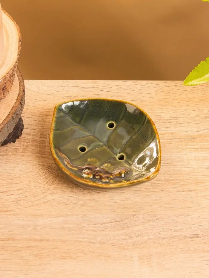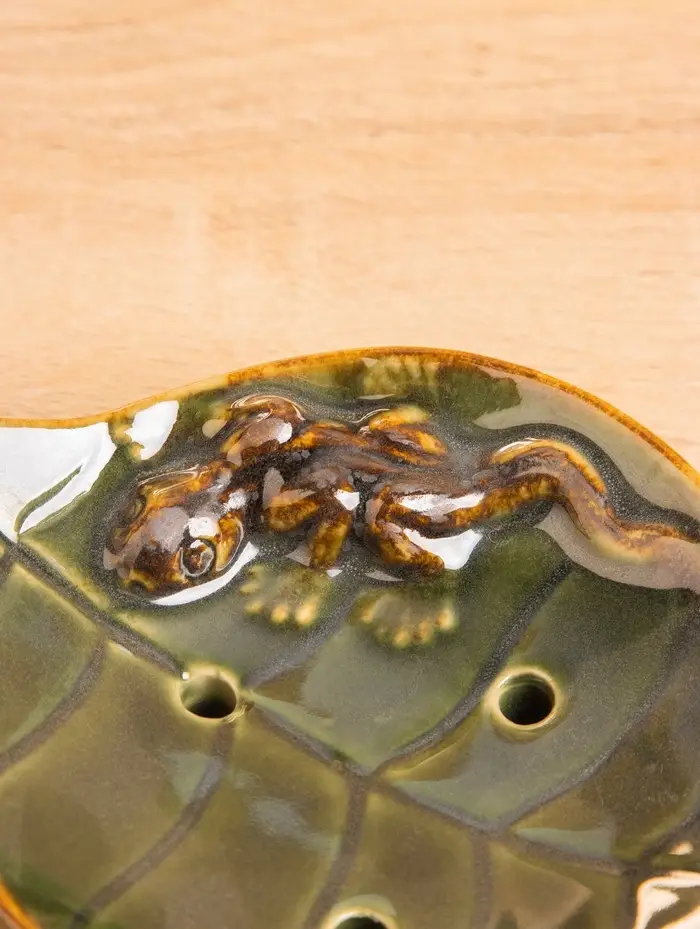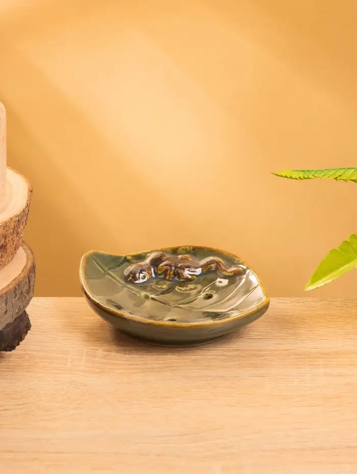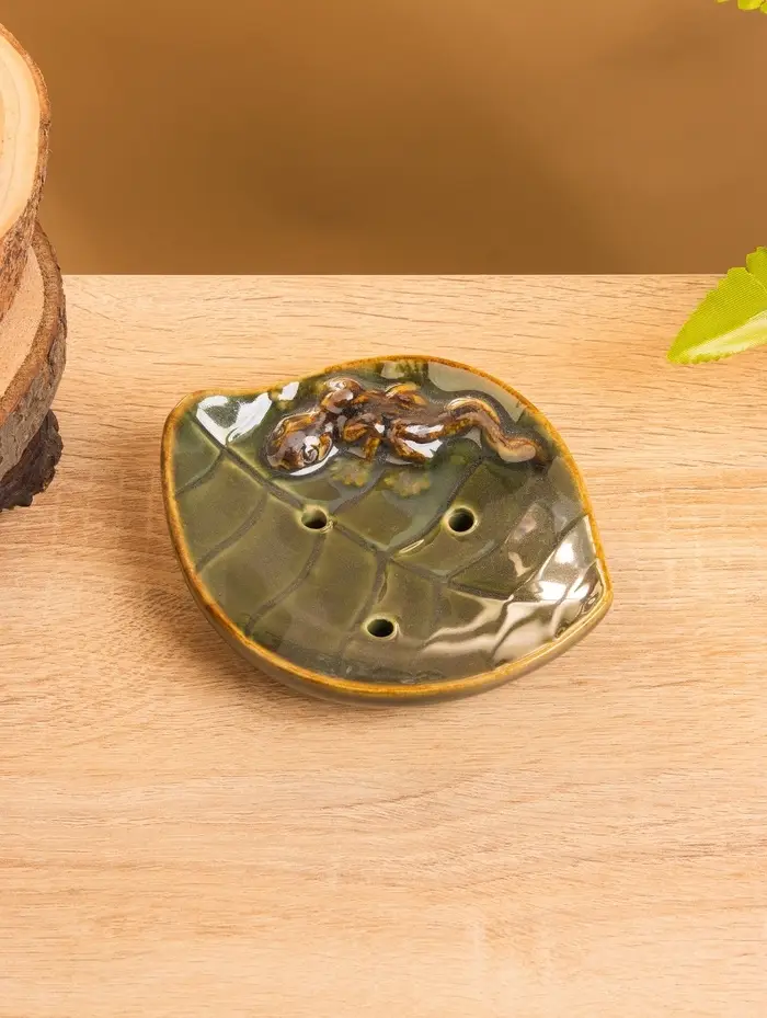 Мыльница "Геккон на листочке" керамика, цв. зелёный, 13х11х2,5 см