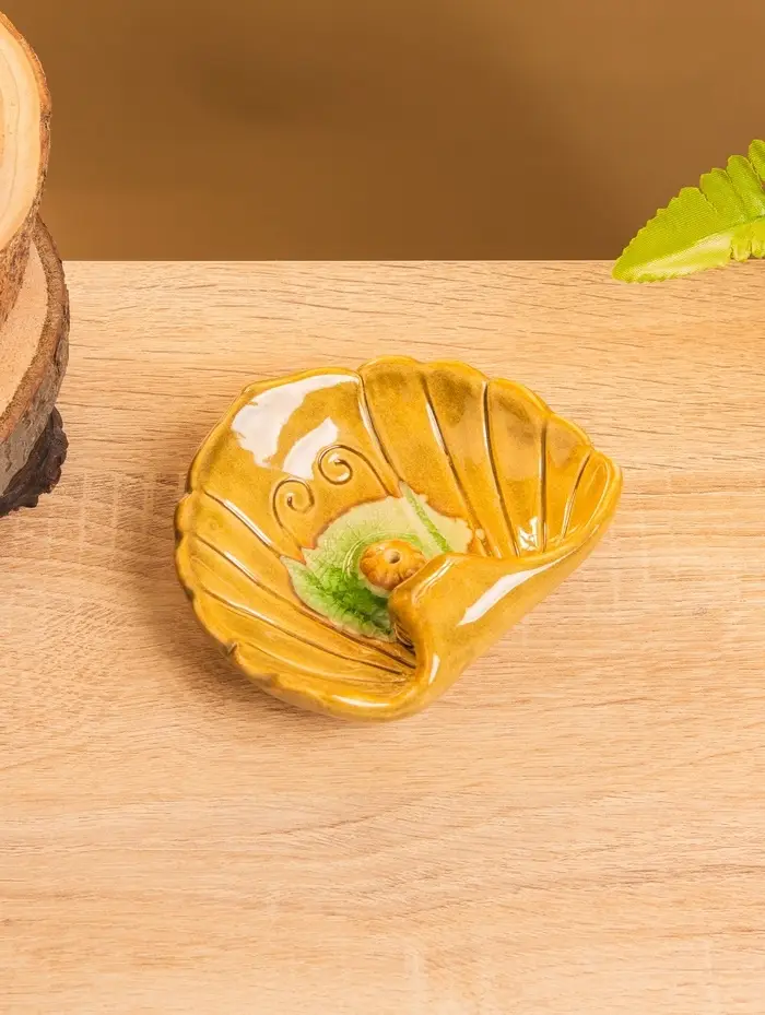 Подставка под благовония "Раковина с жемчужиной" керамика, цв. коричневый, 9х10,5х2 см